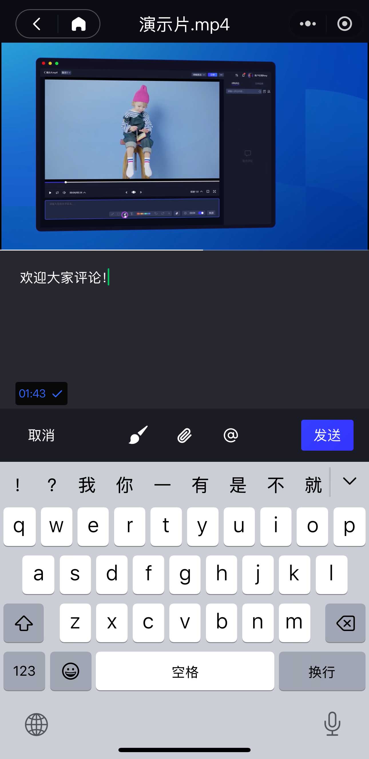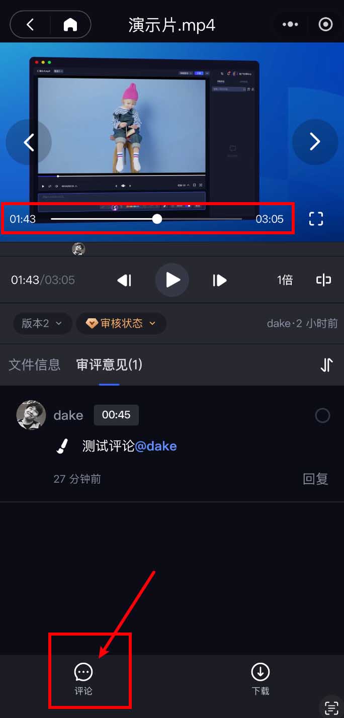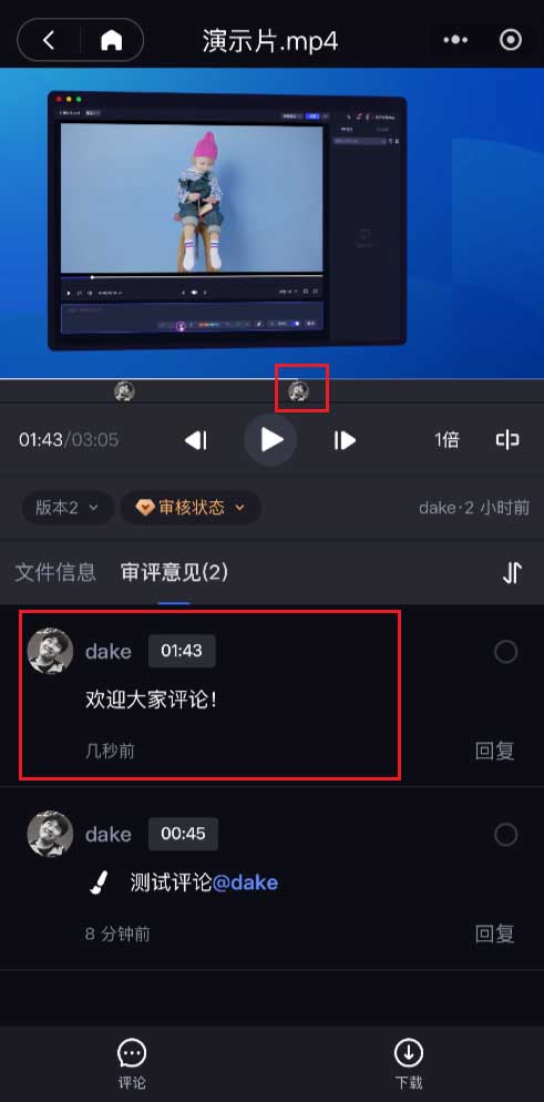 点击【发送】后,评论就会被标注在「那一帧」,并显示在评论区;