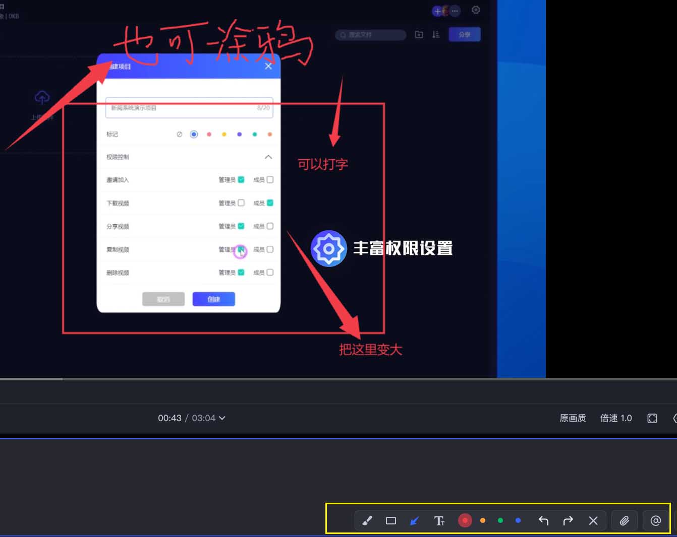 除了文字评论,还支持【画笔】、【方框】、【箭头】、【色彩】等工具,帮助直接在画面上进行涂鸦批注;