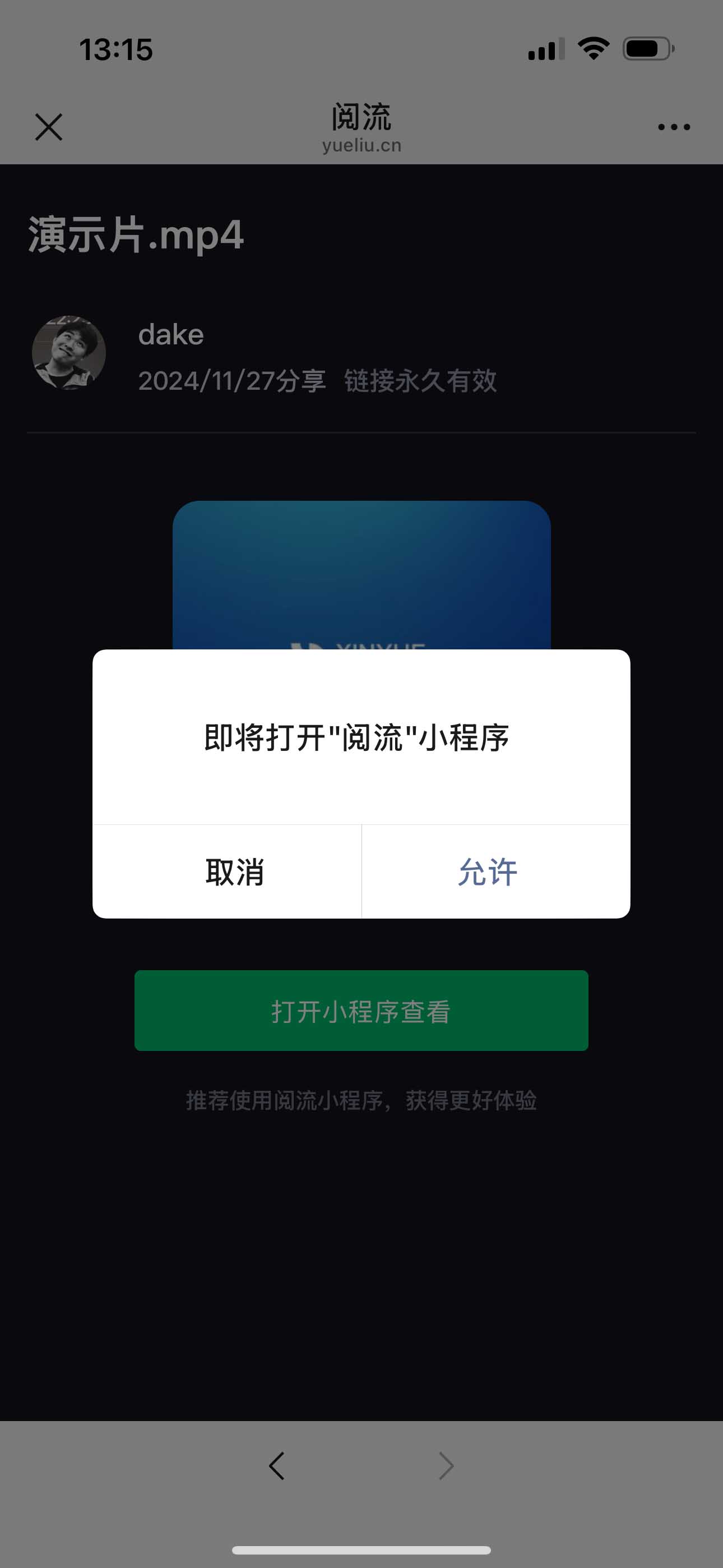 点击链接,点击【打开小程序查看】(第一次使用需要登录微信)